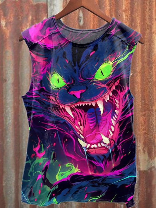 Retro 3D Cat Printed Casual Cotton Tank Top