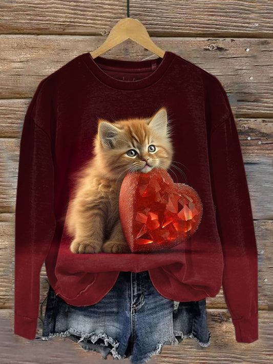 Butterfly Cat Fun Art Print Crew Neck T-Shirt
