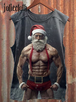 Unisex Fitness Santa Claus Art Illustration Printed Casual Cotton Tank Top