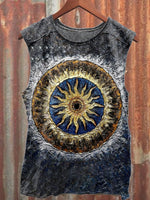 Retro Spirit Sun Art Print Casual Cotton Tank Top