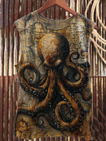 Vintage Nautical Octopus Graffiti Art Print Casual Tank Top