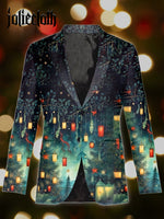 Men's Christmas Winter Street Art Illustration Printed Casual Suit Jacket