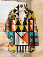 Retro Western Textured Art Print Casual Flannel Coat Cardigan