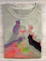 Unisex Fantasy Cat Art Illustration Printed Casual Cotton Short Sleeve T-Shirt