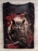 Unisex Funny Owl Art Illustration Printed Casual Cotton Crew Neck T-Shirt