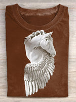 Unisex Three-Dimensional War Horse Illustration Printed Casual Round T-Shirt
