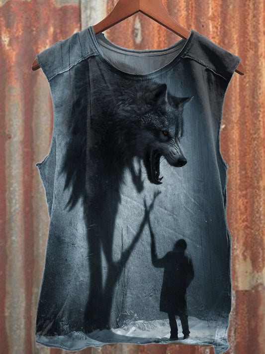 Fierce Wolf Print Casual Cotton Tank Top