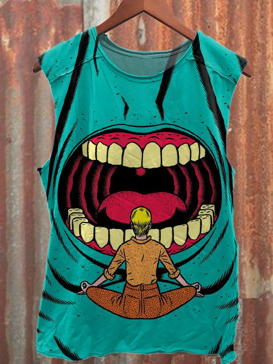 Men's Casual Smoking Alien Printed Tank Top