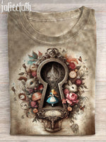 Unisex Fantasy Castle Gate Illustration Print Casual Short Sleeve T-Shirt