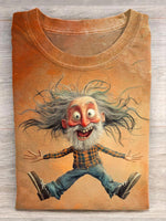Unisex Funny Old Man Illustration Printed Casual T-shirt