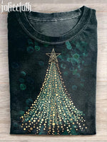 Unisex Retro Christmas Tree Illustration Printed Casual Cotton Short Sleeve T-Shirt