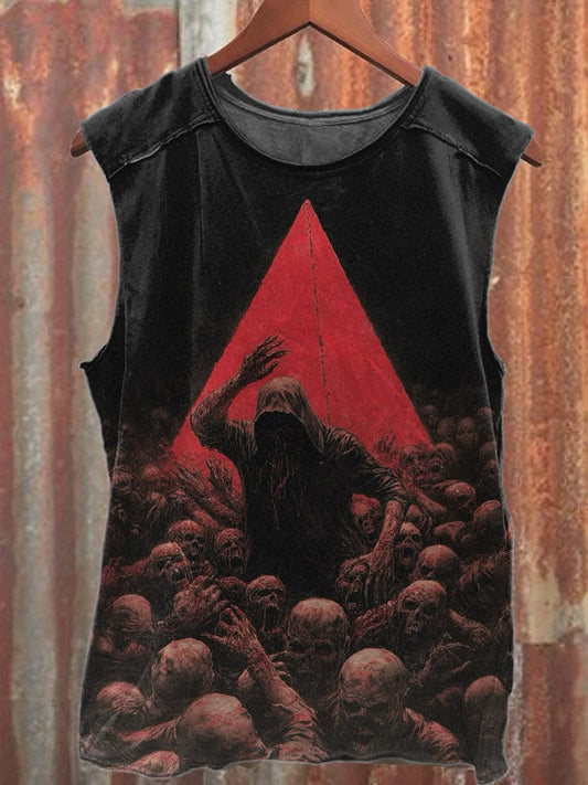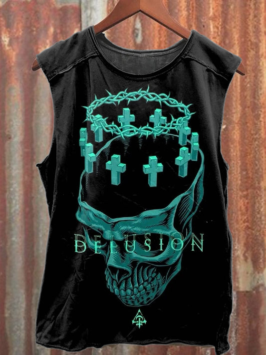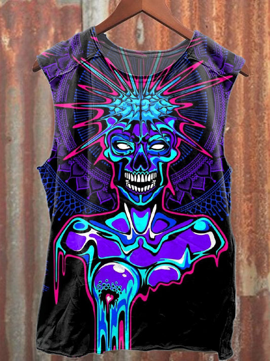 Skull Art Print Casual Sleeveless Lapel Shirt