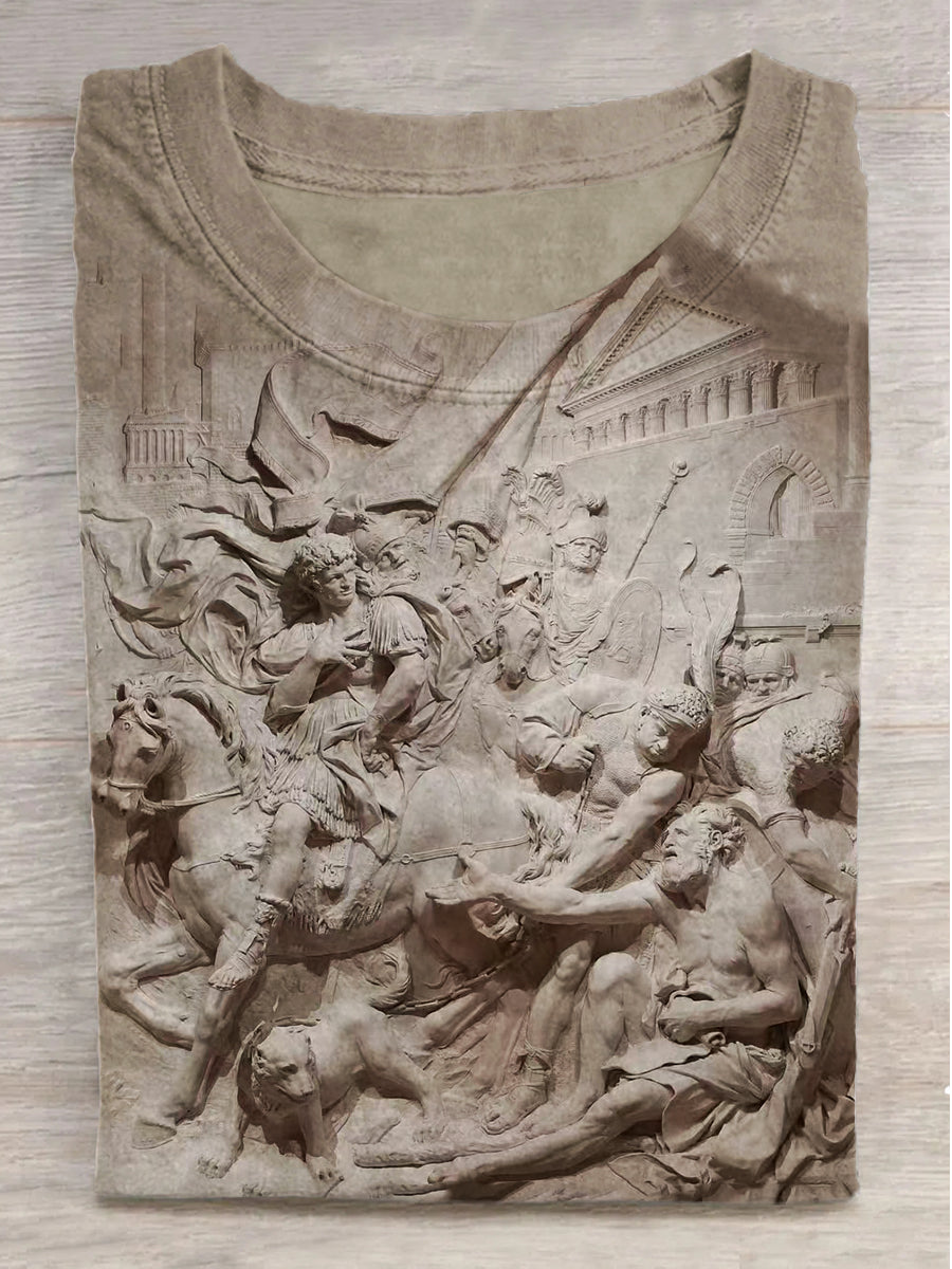 Alexander and Diogenes Print Round Neck Short Sleeve T-Shirt