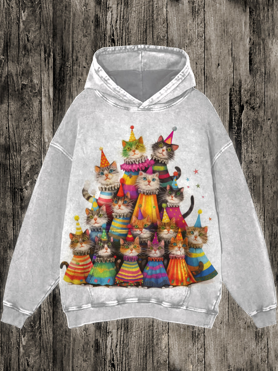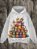 Cat Christmas Tree Art Illustration Printed Casual Long Sleeve Hooded Sweatshirt