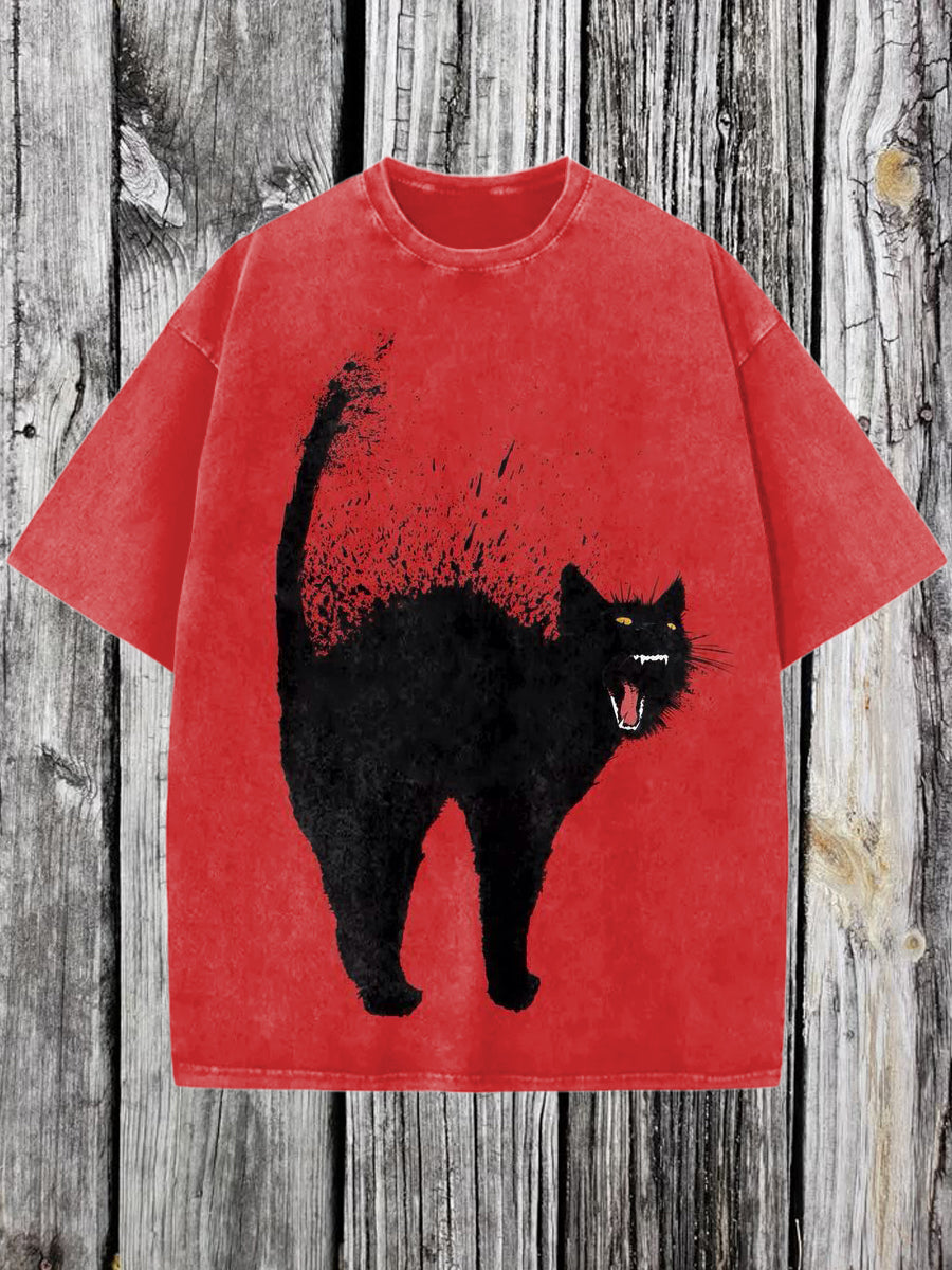 Cat Printed Vintage Fashion Loose Short Sleeve T-Shirt