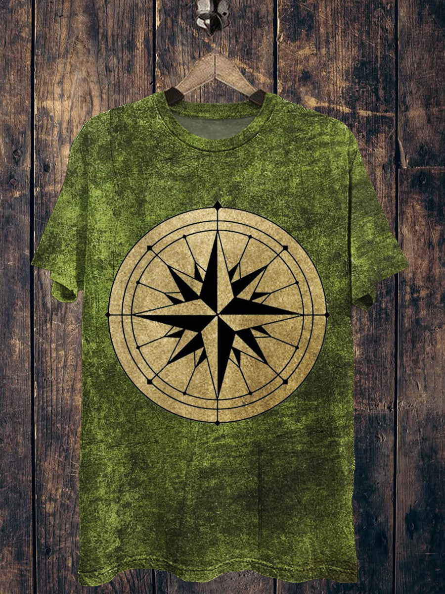 Compass Printed Vintage Fashion Loose Short Sleeve T-Shirt
