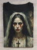 Cross Dark Girl Print Round Neck Short Sleeve T-Shirt