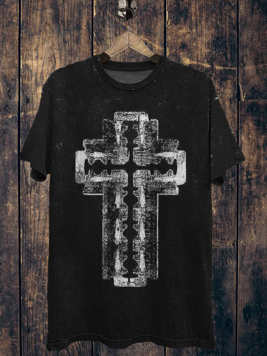 Cross Printed Vintage Fashion Loose Short Sleeve T-Shirt