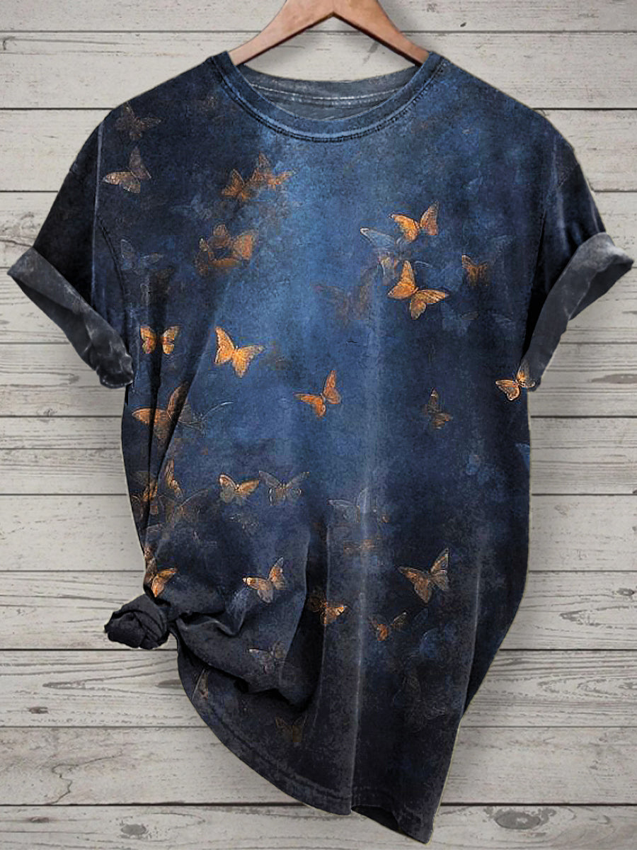 Dark Butterfly Printed Vintage Fashion Loose Short Sleeve T-Shirt
