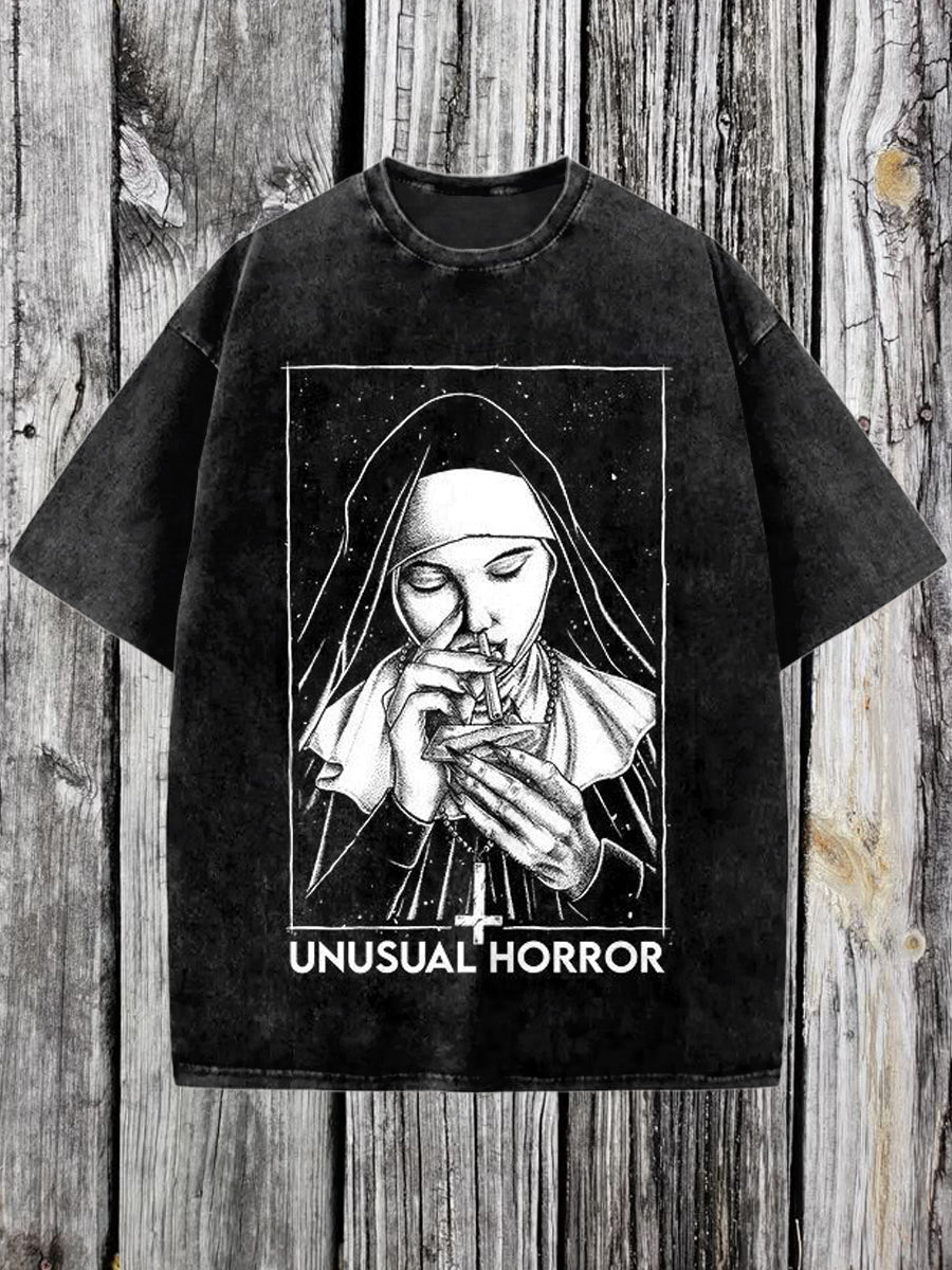 Dark Nun Printed Vintage Fashion Loose Short Sleeve T-Shirt