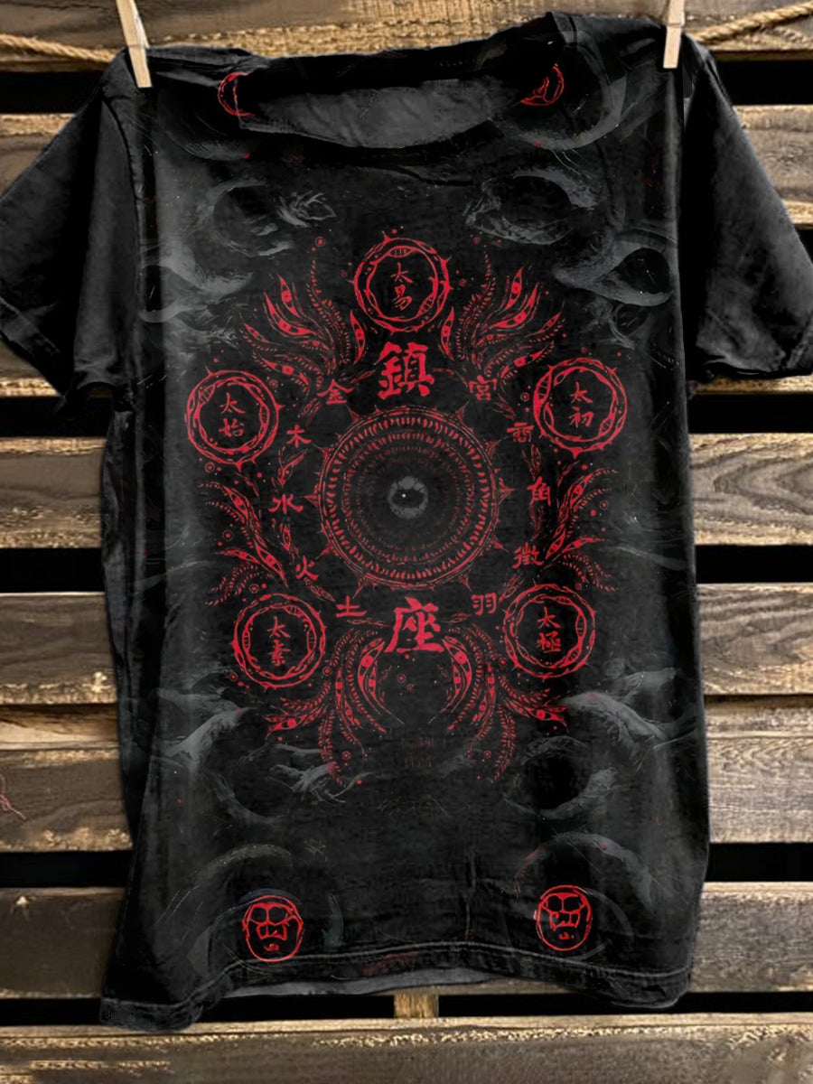 Exorcist Spell Illustration Print Casual Loose T-Shirt