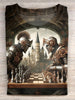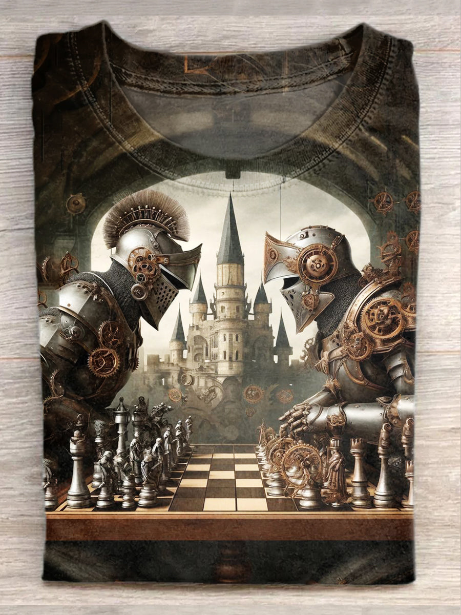 Fantasy Checkerboard World Art Print Cotton T-Shirt