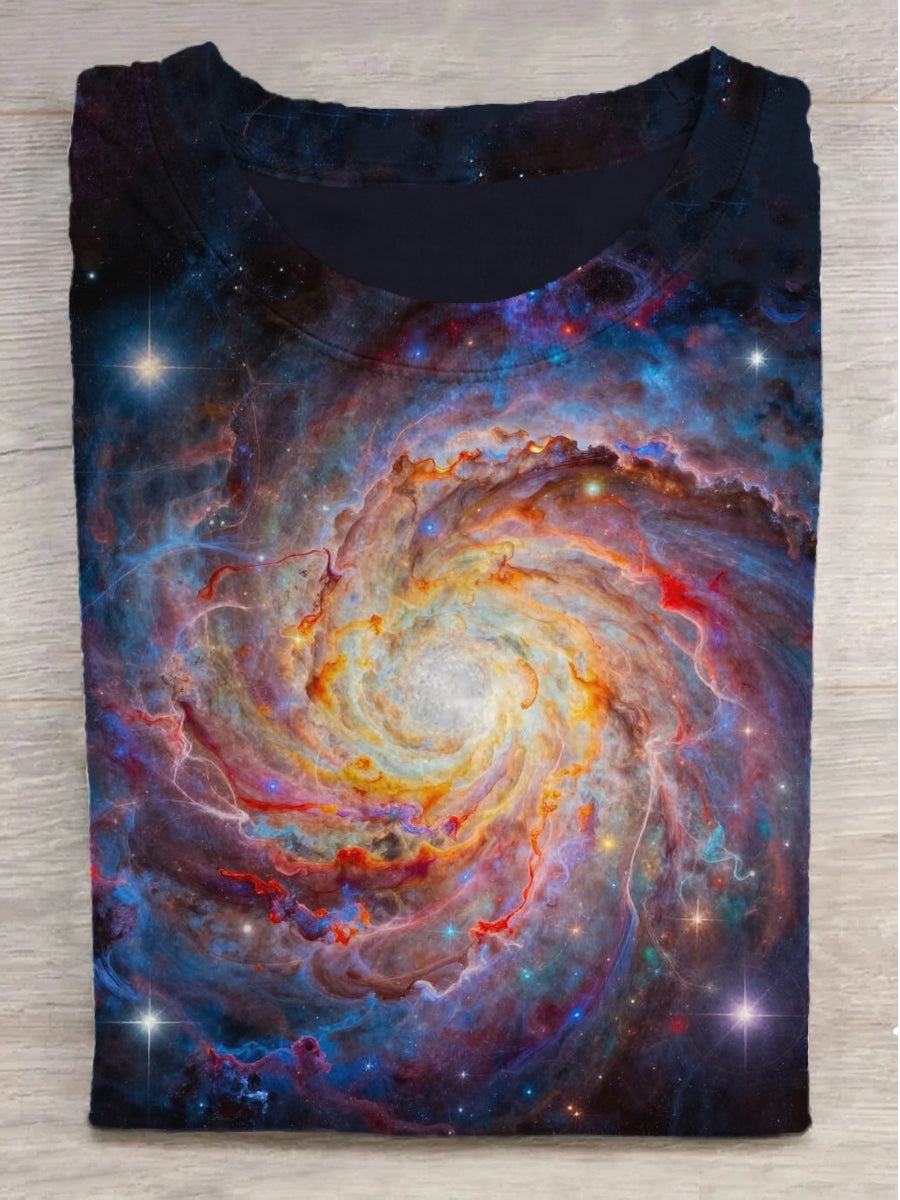 Fantasy Cosmic Star Print Round Neck Short Sleeve T-Shirt