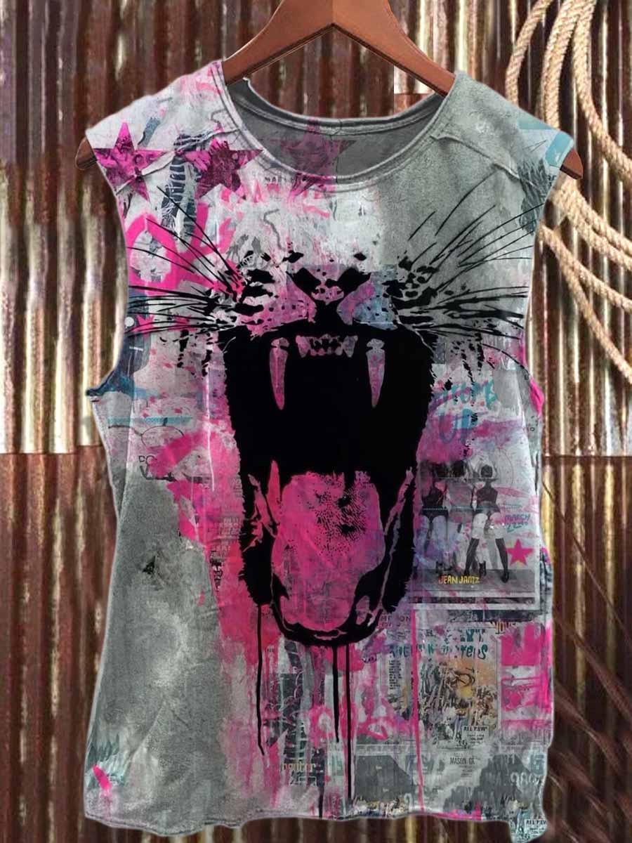 Fantasy Graffiti Print Cotton Loose Tank Top