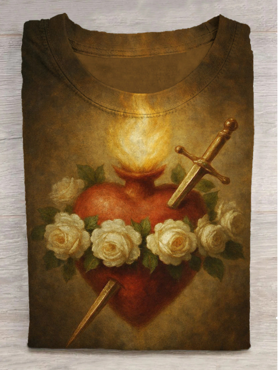 Fantasy Jesus Love Print Round Neck Short Sleeve T-Shirt