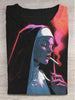 Fantasy Nun Smoking Print Round Neck Short Sleeve T-Shirt