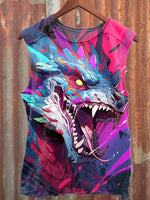 Fantasy Pop Dinosaur Graffiti Print Cotton Tank Top