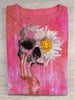 Fantasy Skull Flower Print Round Neck Short Sleeve T-Shirt