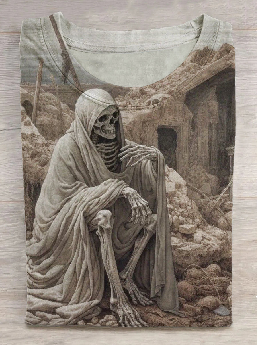 Fantasy Skull Print Round Neck Short Sleeve T-Shirt