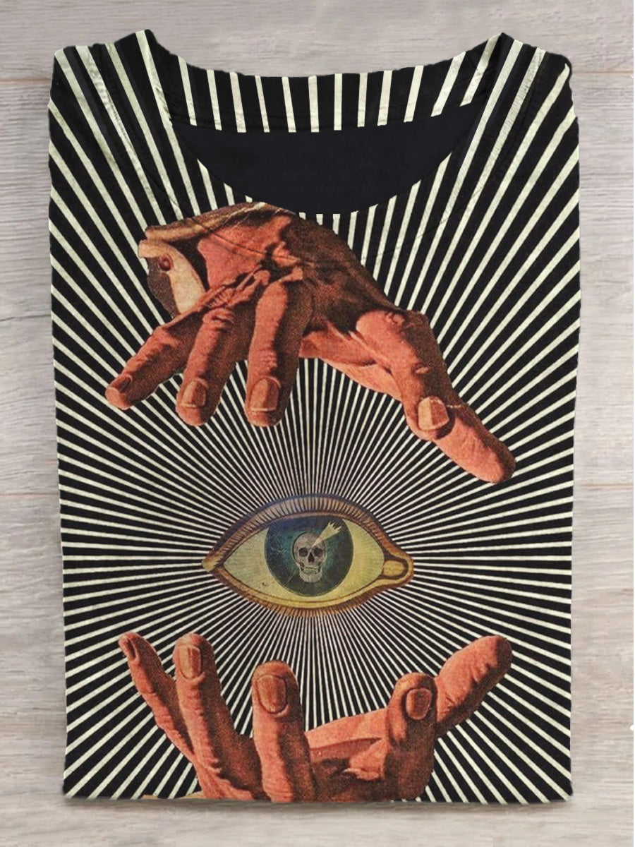 Fantasy Stripe Eye Print Round Neck Short Sleeve T-Shirt