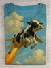 Funny Fantasy Flying Cow Print Round Neck Short Sleeve T-Shirt