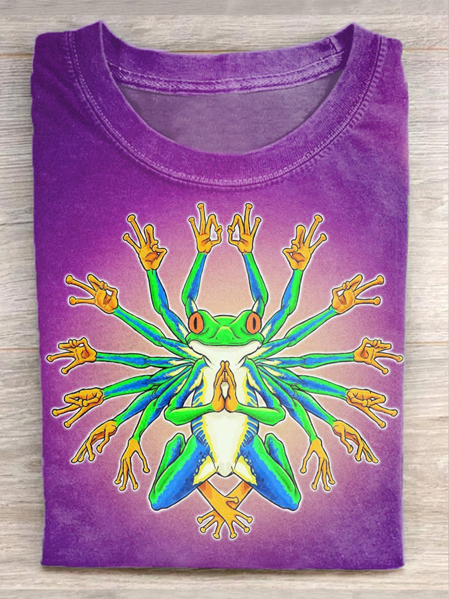 Funny Frog Shadowless Hand Art Print Cotton T-shirt