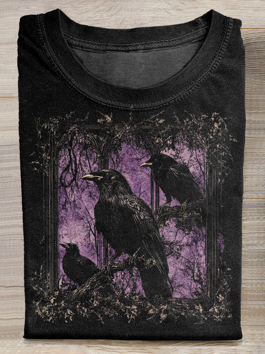 Gorgeous Dark Crow Print Casual Pure Cotton Loose T-Shirt