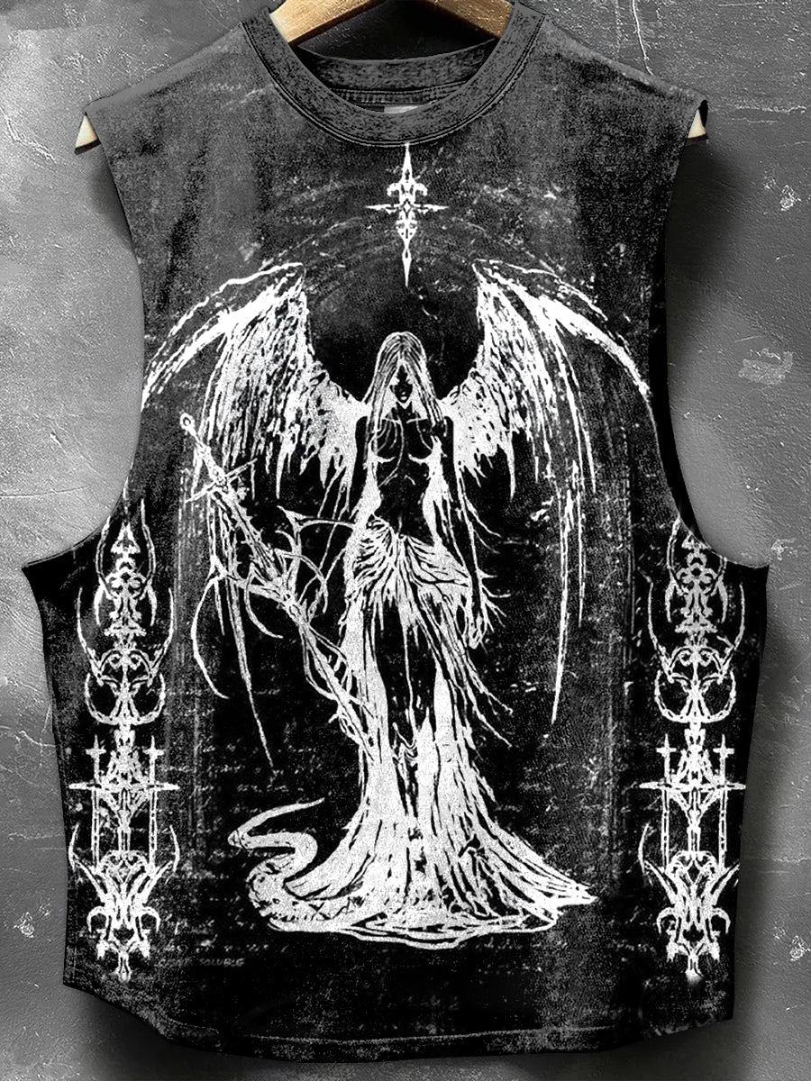 Gorgeous Line Angel Illustration Printed Casual Loose Tank Top