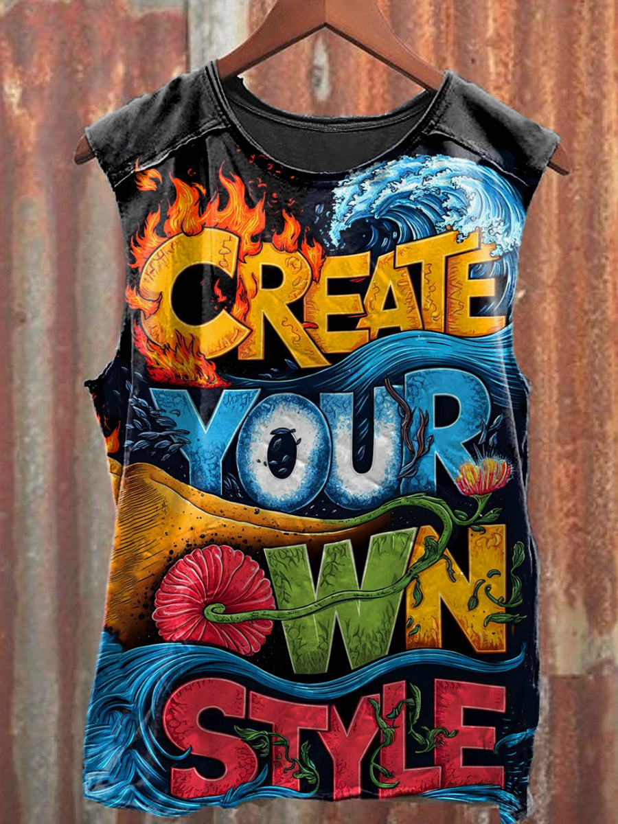 Men's Casual Colorful Letter Illustration Printed Tank Top
