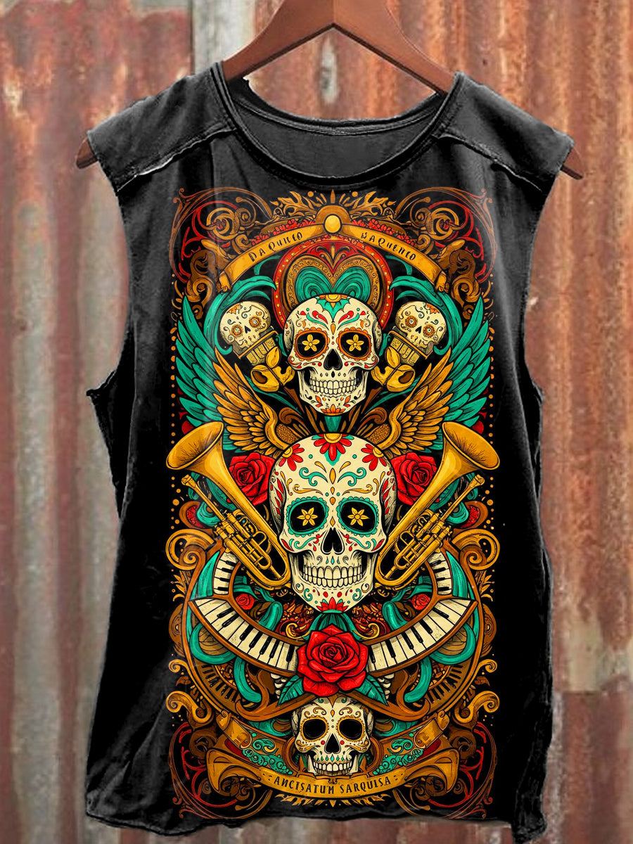 Men's Casual Day Of The Dead Skull Printed Tank Top