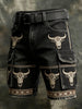 Men's Retro Vacation Business Art Western Bull Head Animal Print Casual Shorts