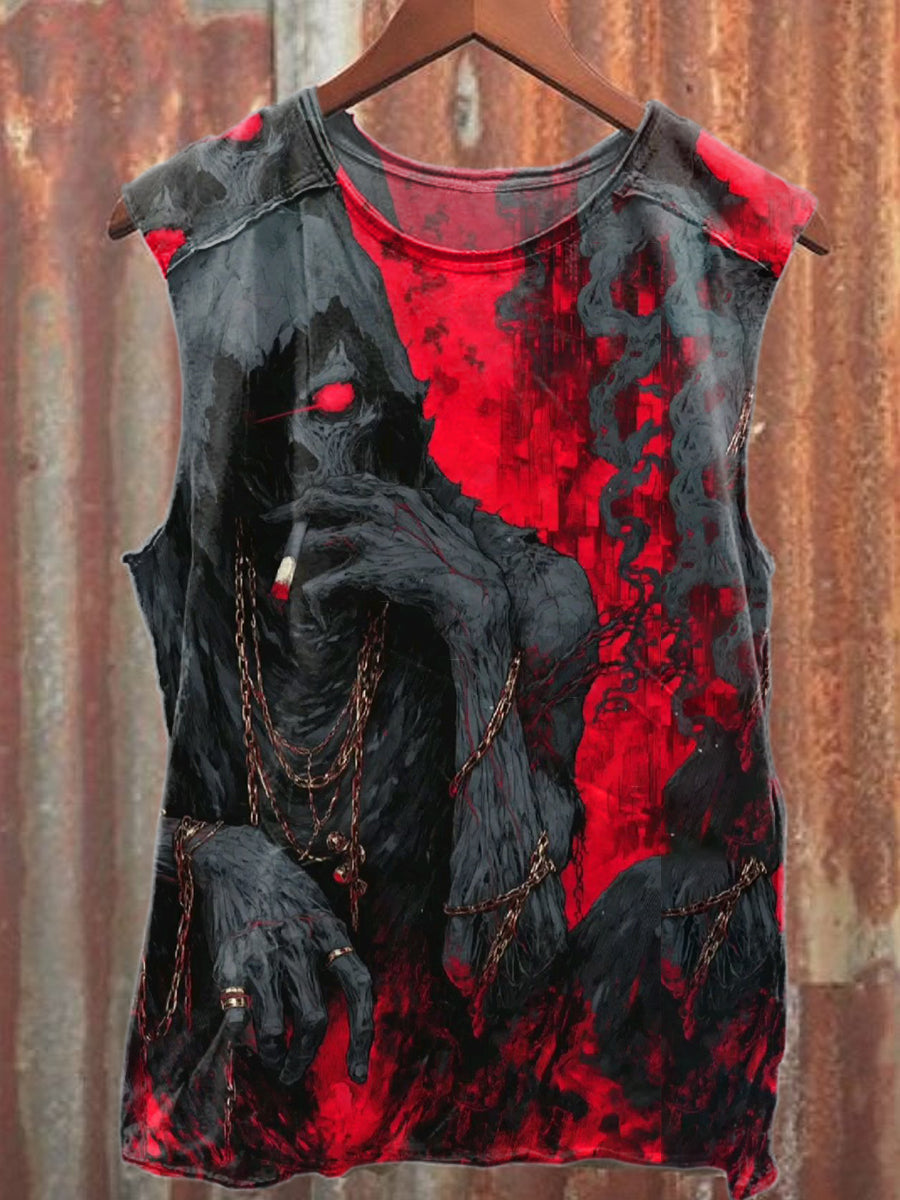 Men's Vintage Graffiti Cat Print Casual Cotton Tank Top