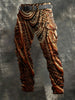 Men's Vintage Leather-Textured Print Casual Trousers