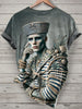 Navy Printed Vintage Fashion Loose Short Sleeve T-Shirt