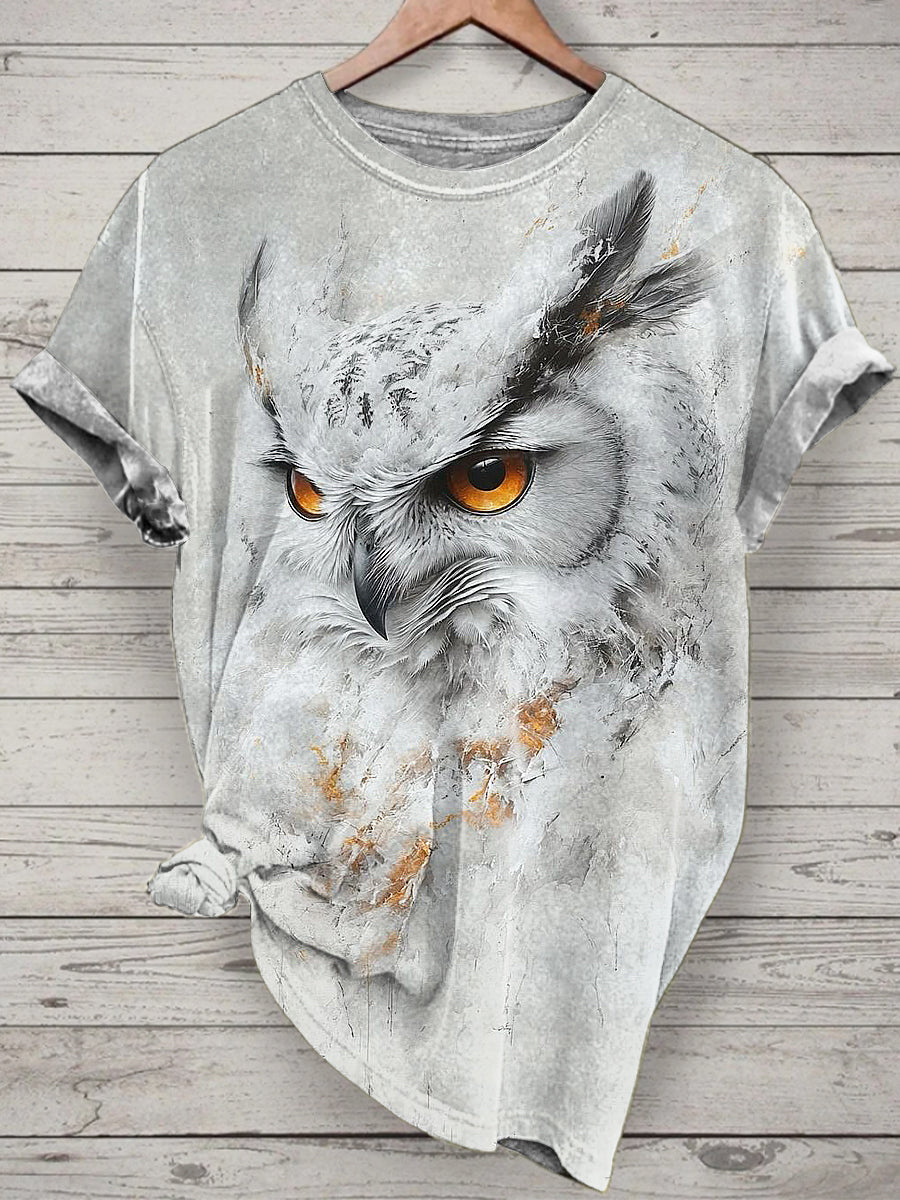 Owl Printed Vintage Fashion Loose Short Sleeve T-Shirt
