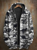 Retro Abstract Dinosaur Pattern Printed Casual Hooded Coat