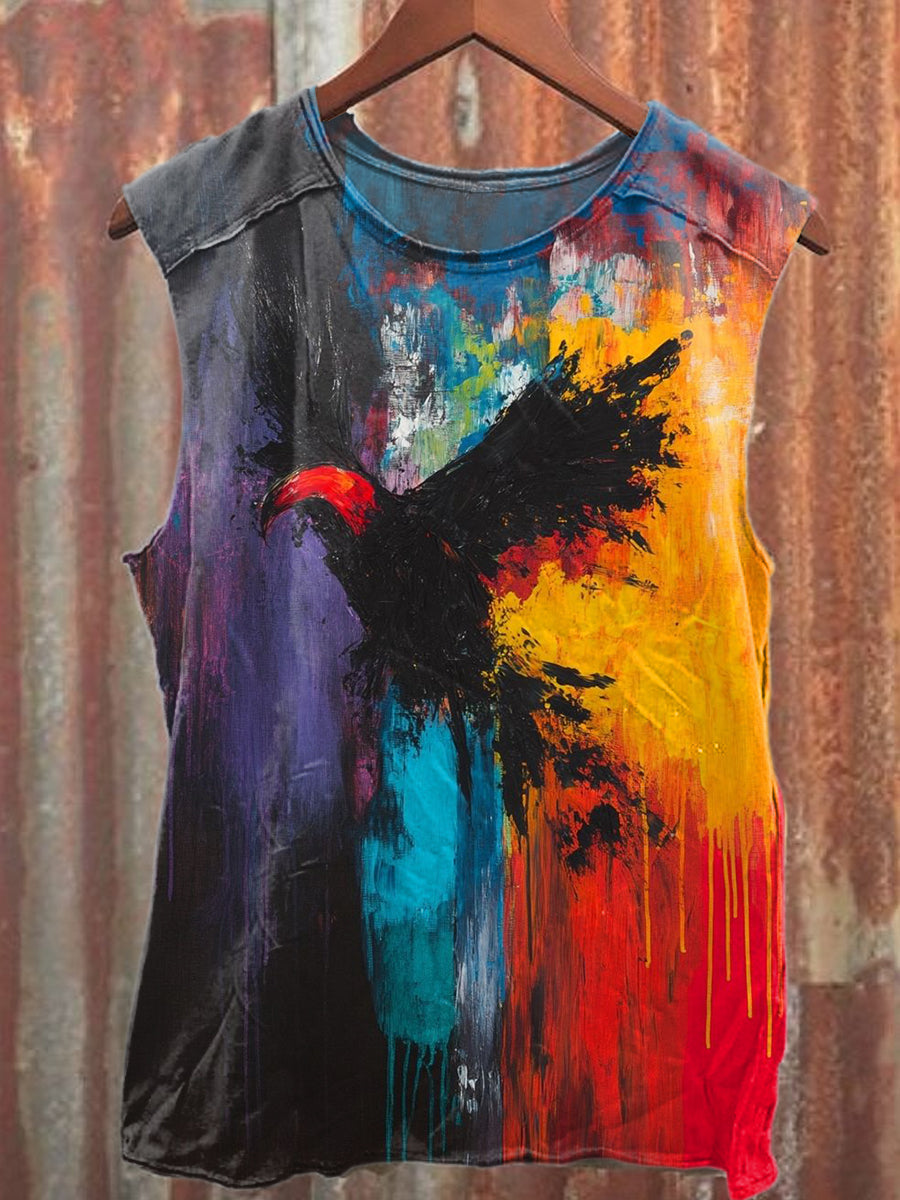 Retro Abstract Graffiti Illustration Printed Loose Tank Top