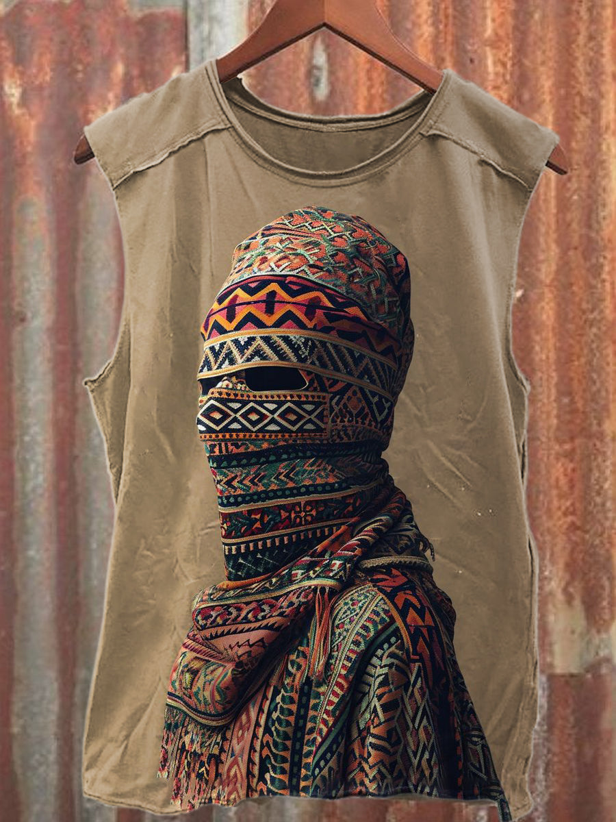Retro Abstract Mask Man Print Casual Loose Cotton Tank Top
