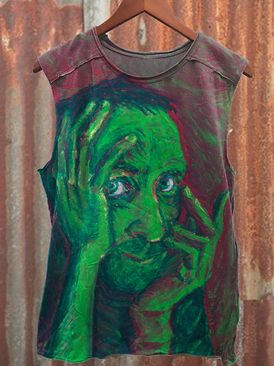 Retro Abstract Print Casual Loose Tank Top