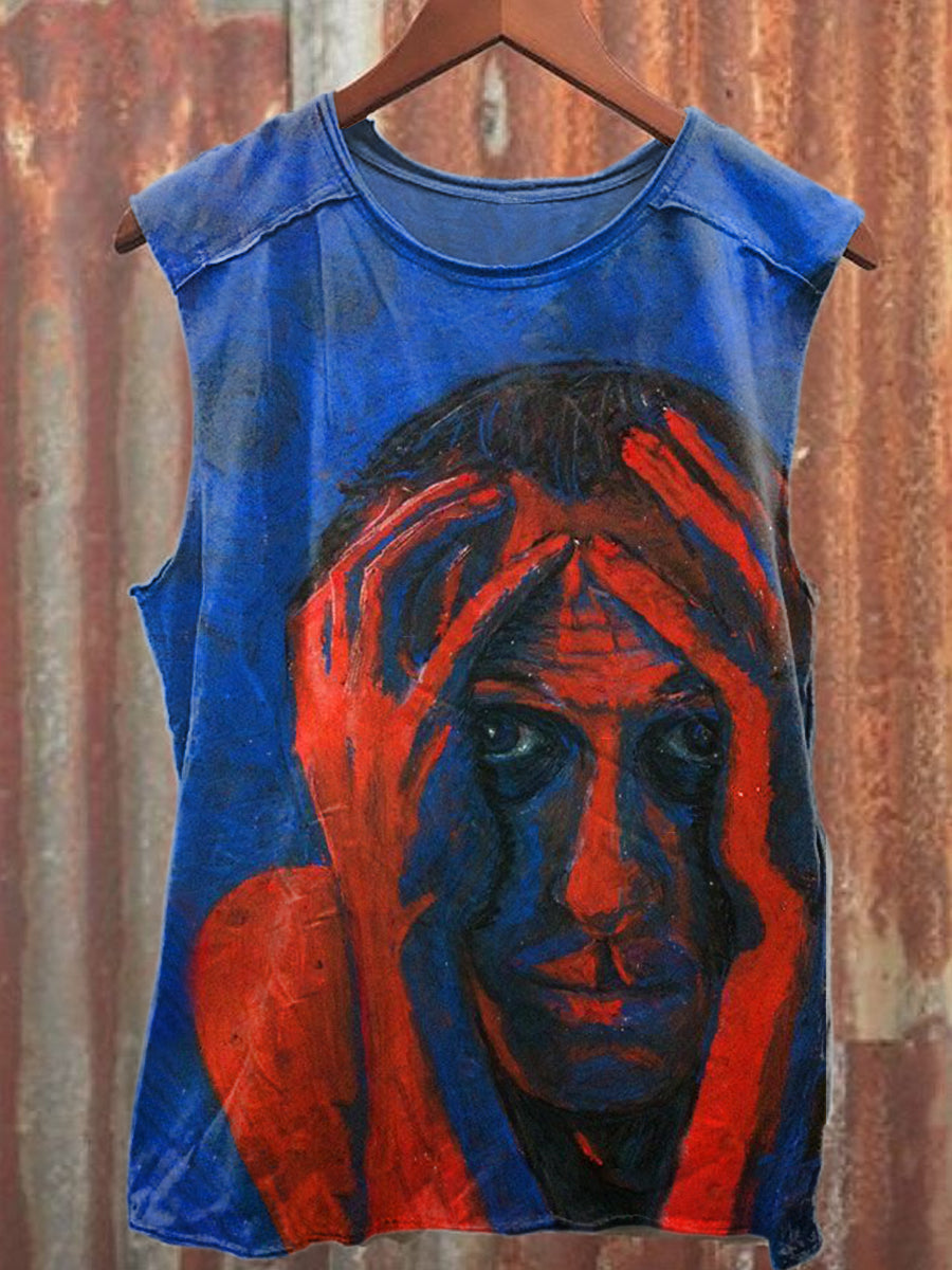 Retro Abstract Print Casual Loose Tank Top